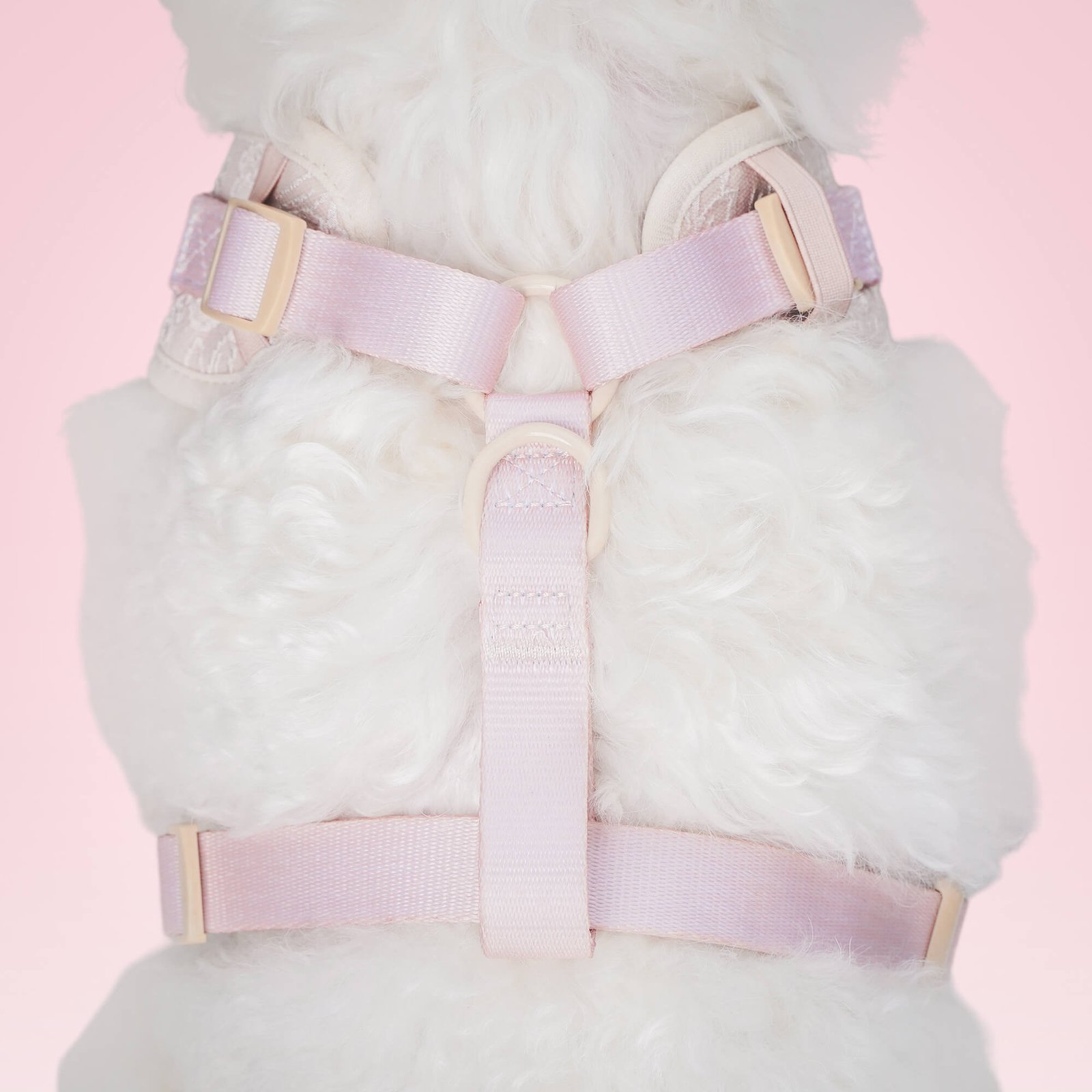 The Morning Glory Dog Harness features a soft, breathable mesh design with adjustable neck and chest straps for a custom fit. It includes lockable security buckles and durable stitching to keep your pup safe and stylish during walks.